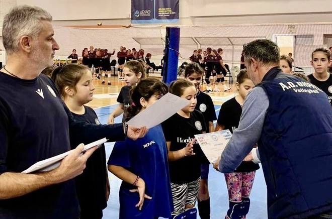 Στο φινάλε του τουρνουά ο Πρόεδρος Γιώργος Σκοπελίτης απένειμε σε κάθε παιδί αναμνηστικό δίπλωμα – έπαινο, αναγνωρίζοντας τη συμμετοχή, την προσπάθεια και τον ενθουσιασμό όλων, με αφορμή μία ακόμη εκδήλωση που έφερε το “νέο αίμα” της ομάδας πιο κοντά στο βόλεϊ.
