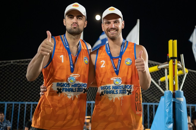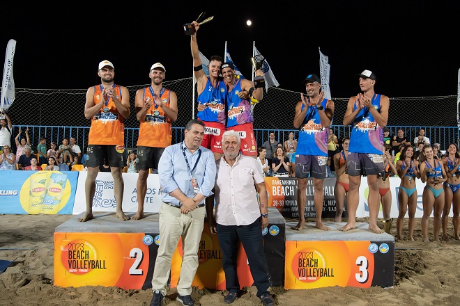 Τα μετάλλια στις Γεωργίνα Αντωνακάκη, Ιωάννα Περδικάκη που κατέκτησαν τη 2η θέση έδωσαν το μέλος του ΔΣ της ΕΟΠΕ και μέλος της Επιτροπής Μπιτς Βόλεϊ Ελένη Καζάκου και ο Αντιδήμαρχος Αγίου Νικολάου Γιώργος Βάρδας.