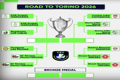 Ολοκληρώθηκε το παζλ του Final-4 του φετινού CEV Champions League Ανδρών, με 2 πολωνικές ομάδες, 1 ιταλική και 1 τουρκική να διεκδικούν την “κορυφή” της ευρωπαϊκής ελίτ. Η κάτοχος του τίτλου Περούτζια θα αντιμετωπίσει την Πρότζεκτ Βαρσοβίας, με την περσινή φιναλίστ Ζαβιέρτσιε να αντιμετωπίζει την τουρκική Ζιράατ. Οι αγώνες θα διεξαχθούν στο Τορίνο, το διήμερο 16-17 Μαΐου.