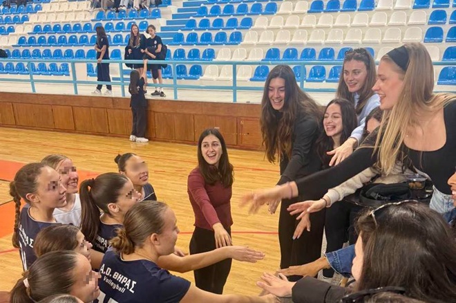 Ξεχωριστή χαρά έδωσε η παρουσία αθλητριών της μεγάλης ομάδας του Αθλητικού Ομίλου Θήρας. Η Μαρια Γενιτσαριδη, η Άθηνα Δημητριάδου, η Ανδρομάχη Τσιόγκα, η Χριστίνα Θωμαΐδου, η Λίνα Σαουλίδου, η Σίσσυ Κεραμιτσοπούλου, η Αναστασία Σιρινίνα, η Ελευθερια Μπαρμπαλιου και η Symone Abbott βρέθηκαν δίπλα στους μικρούς αθλητές μας, φωτογραφήθηκαν μαζί τους, συνομίλησαν και τους ενέπνευσαν με το παράδειγμά τους. Η παρουσία τους αποτέλεσε μια όμορφη γέφυρα ανάμεσα στις ακαδημίες και τη γυναικεία  ομάδα, δείχνοντας στα παιδιά ότι με προσπάθεια, υπομονή και αγάπη για το άθλημα, τα όνειρα μπορούν να γίνουν πραγματικότητα”.