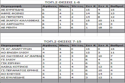 Πρεμιέρα του Β’ γύρου για την Τοπικής 2 γυναικών ΕΣΠΕΔΑ για θέσεις 1-6 και οι δύο πρωτοπόροι Ευρυπίδης και Φοίνικας, συνέχισαν με νίκες για την έκτη αγωνιστική. Η ομάδα της Σαλαμίνας έκανε περίπατο στο Ρέντη με 0-3 και ο Φοίνικας επικράτησε της πέμπτης Αφροδίτης με 3-1 με ανατροπή από 0-1. Και οι δύο ομάδες με τα καθαρά τρίποντα που πήραν ισοβάθμησαν στους 15 πόντους ενώ μεγάλο ματς έγινε στην Καλλιθέα. Εκεί ο παθιασμένος Ίκαρος λύγισε μετά από δραματικό παιχνίδι στο ντέρμπι τετράδας. 3-2 το Περιστέρι, και το ρίξε από την δεύτερη στην τρίτη θέση ενώ το πλησίασε στον πόντο (12-11β).