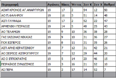 Σταθερά στην πρώτη θέση της Τοπικής Γυναικών ΕΣΠΕΔΑ, τρεις αγωνιστικές πριν τη λήξη της κανονικής περιόδου, παρέμεινε ο Κρόνος Αγ, Αναργύρων, ο όποιος για την 19η αγωνιστική, νίκησε άνετα εκτός έδρας τον όγδοο Άρη Κερατσινίου και έφτασε τους 50 πόντους. Στην δεύτερη θέση συνέχισε το Π. Φάληρο με 48 βαθμούς, μετά το εύκολο τρίποντο που πήρε κόντρα στον έκτο Ιάσωνα που έμεινε στους 27 βαθμούς. Στην τρίτη θεση και στους 47 πόντους η Γλυφάδα που επικράτησε της Αρμενικής με 3-1. Ηταν η δεύτερη φετινή νίκη του ΑΣΠ κόντρα στην αντίπαλο της που βρίσκεται πλέον στην τέταρτη θέση με 43. Δεύτερη σερί νίκη για τον Τελαμώνα που επικράτησε 3-0 του δέκατου Ιπποκράτη και φιγουράρει στην πέμπτη θέση με 28 βαθμούς. Στην έβδομη θεση ο εξαιρετικός Έσπερος που επικράτησε δύσκολα εκτός έδρας του ουραγού ΑΣ Πέρα, και ανέβηκε στους 26 πόντους ενώ οι φιλοξενούμενες έμειναν στους 7. Σπουδαίο διπλό του Σείριου με 1-3 στο «Σαλπέας» κόντρα στον Πειραϊκό. Οι νικήτριες πλέον βρίσκονται στην ένατη θέση με 20 βαθμούς και προσπαθούν να αποφύγουν τα πλέι άουτ, ενώ οι γηπεδούχες παρέμειναν ενδέκατες με 10 πόντους.