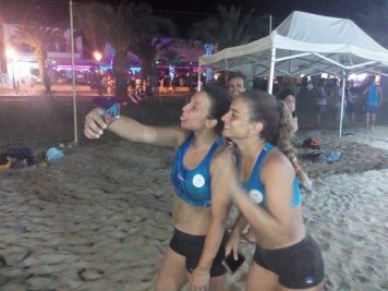 Στο ταμπλό των κοριτσιών ο βραδινός τελικός, υπό το φως των προβολέων αλλά και το βλέμμα αρκετών φίλων του αθλήματος στις κερκίδες, μεταξύ των οποίων ο Εβρίτης προπονητή της ΓΕ Ηρακλείου, Γιώργος Σταυρόπουλος, η πρώην ομοσπονδιακή προπονήτρια και πρωταθλήτρια του Παναθηναϊκού, Γιούλη Παρασκάκη, η προπονήτρια του Πήγασου Ηρακλείου και πρώην συμπαίκτριά της Παρασκάκη στην άμμο, Νίνα Κατερίνη, οι πρώην ομοσπονδιακοί προπονητές, Νεκτάριος Νικάκης και Αντιγόνη Μουτσάκη κ.α, κρίθηκε στο τάι μπρέικ.