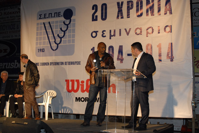Στην εκδήλωση πρώτος των… χορό των βραβεύσεων άνοιξε ο Νίκος Παπαγεωργίου που παρέλαβε το βραβείο του από τα χέρια του Γενικού Γραμματέα της ΕΟΠΕ Παναγιώτη Σιδέρη.