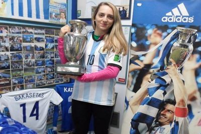 Έτσι για λίγη ώρα η Χάσκου έγινε Sokratis, η Ζερίτη Ronaldo, η Σκλήρη Messi η Πασσιά Zidane, η Μαρία Κωνσταντοπούλου Beckham! Μάλιστα η τελευταία δοκίμασε τεράστια έκπληξη όταν βρήκε τη φανέλα του αδελφού της και γνωστού τερματοφύλακα , Ντίμι Κωνσταντόπουλου που ξεκίνησε την καριέρα του από την Καλαμάτα, συνέχισε Αιγάλεω, Κέρκυρα, Χαρτπουλ, Σουόνσι, Κάρντιφ, Κόβεντρι, Κέρκυρα, ΑΕΚ και φέτος στη Μίντλεσμπρο.