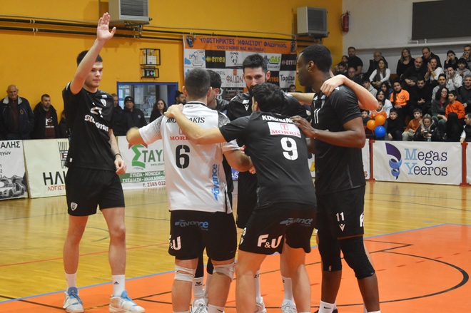 Οι γηπεδούχοι του Κώστα Χριστοφιδέλη παρουσιάστηκαν γεμάτοι ενέργεια, ακολούθησαν την τακτική, έχοντας ακρογωνιαίο λίθο τον διαγώνιό τους Χέρμανς Έγκλεσκαλνς και εκμεταλλευόμενοι τα λάθη των «ερυθρόλευκων» προκειμένου να φτάσουν σε μια πανηγυρική πρόκριση στα προημιτελικά. “Παρών” σε δύσκολες φάσεις φώναξε ο Κόβαρ κυρίως στο δεύτερο σετ ενώ ουσιαστικός ήταν ο νεοαποκτηθείς Κώστας Καπετανίδης που έκανε ζημιά σε τρίτο και τέταρτο χωρίς λάθος.