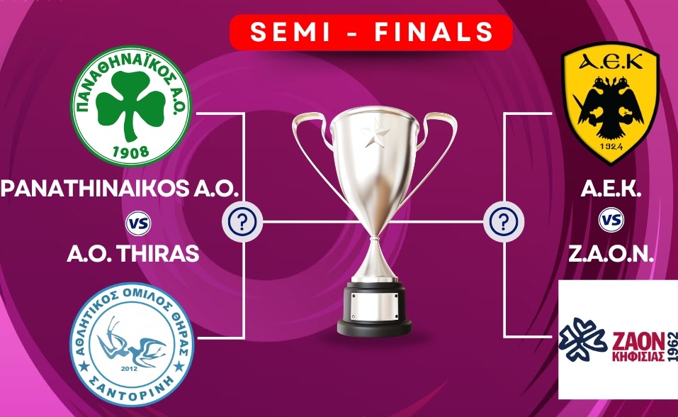 H αυλαία των ημιτελικών ανοίγει στις 18.00 (AEK AC TV) στο κλειστό του Ολυμπιακού Χωριού όπου οι δύο μεγάλες εκπλήξεις των προημιτελικών, ΑΕΚ και ΖΑΟΝ. Αμφότερες ρίχνονται στη μάχη της πρόκρισης με την ψυχολογία στα ύψη, έχοντας αποκλείσει νωρίτερα με εντυπωσιακό τρόπο τους φετινούς διεκδικητές του τίτλου, Πανιώνιο και Ολυμπιακό, έχοντας μάλιστα μειονέκτημα έδρας.