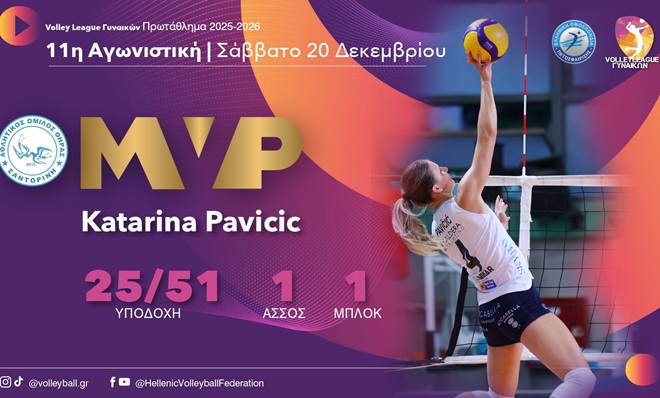 Η πρώτη Ελληνίδα αθλήτρια βόλεϊ που σφράγισε το διαβατήριό της για τα ευρωπαϊκά γήπεδα, η Πελαγία Σκούρα, βράβευσε στο ΔΑΚ Πυλαίας την Βερόνικα Χουντιμά του Άρη, MVP της 14ης αγωνιστικής.