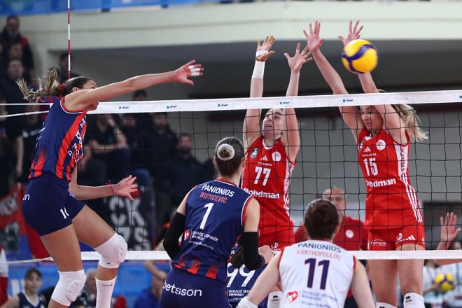 Σε μια αμφίρροπη αναμέτρηση, Πανιώνιος και Ολυμπιακός προσέφεραν θέαμα υψηλού επιπέδου στους φίλους του βόλεϊ με τις «κυανέρυθρες» να κερδίζουν στα σημεία και να αφήνουν εκτός τελικού τις μέχρι χθες κατόχους του τίτλου.