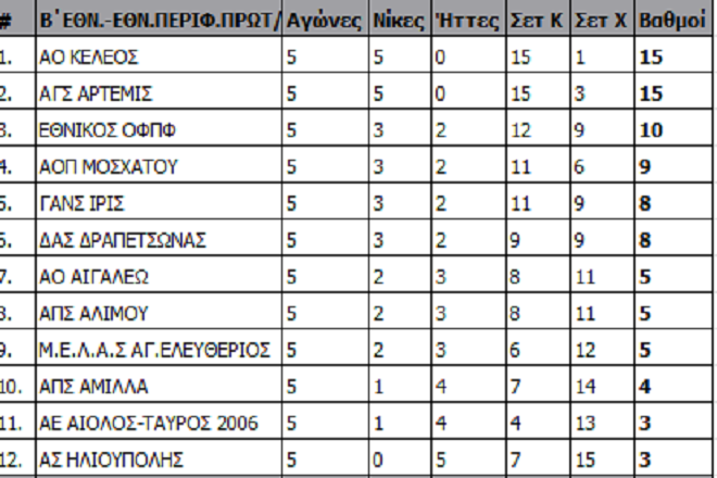 Με την ολοκλήρωση της 5ης αγωνιστικής στην Β’ Εθνική γυναικών οι Κελεός και Άρτεμις συνέχισαν αήττητοι, με το 5 στα 5. Μετά την επόμενη αγωνιστική όμως θα μείνει μια από τις δυο ομάδες στην κορυφή, καθώς οι δυο θα αναμετρηθούν μεταξύ τους σε ντέρμπι κορυφής.