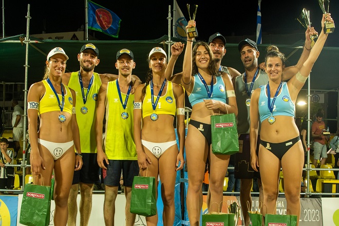 Το παρθενικό τους χρυσό μετάλλιο στο Πανελλήνιο πρωτάθλημα μπιτς βόλεϊ πανηγύρισαν στην άμμο του Karavi Club στον Σχινιά ο Αντώνης Καρύκας με τον Κώστα Βένιο. Στο πρώτο σκαλί του βάθρου στο KARAVI OPEN για πρώτη φορά φέτος και η Δήμητρα Μαναβή με την Λίζα Τριανταφυλλίδη.